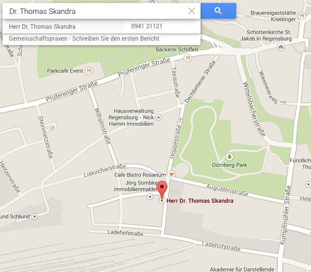 Unsere Praxis liegt in der Hoppestraße 14 im inneren Stadtwesten, ganz in der Nähe des Verlagsgebäudes der Mittelbayerischen Zeitung, des Amtsgerichts und des Dörnbergparks.